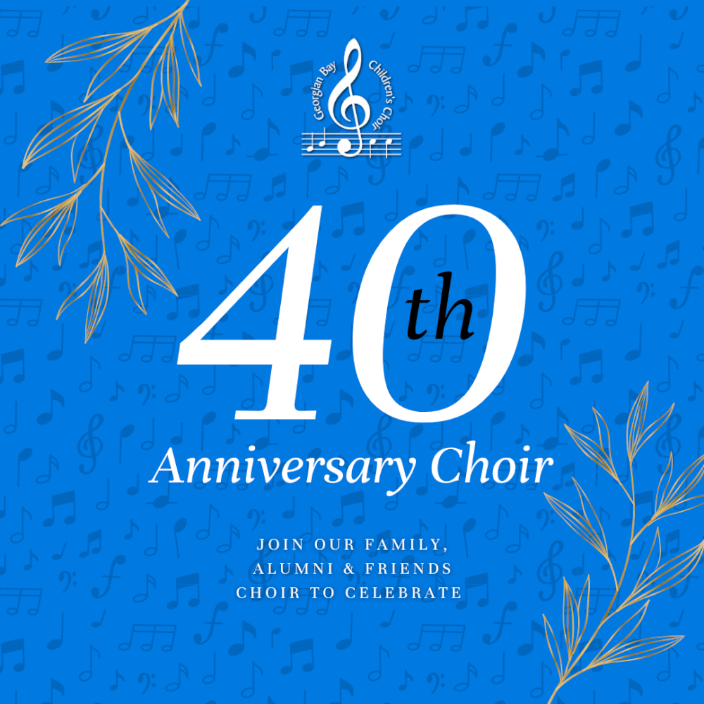 To celebrate the 40th anniversary of the Georgian Bay Children’s Choir, we are creating a Family, Alumni & Friends Choir! This pop up mixed voice (soprano, alto, tenor, bass) group will perform 2 massed choir pieces WITH the GBCC and one piece on their own under the direction of Dr. Regan MacNay. Six rehearsals (plus concert week), 3 pieces, and a whole lot of fun.